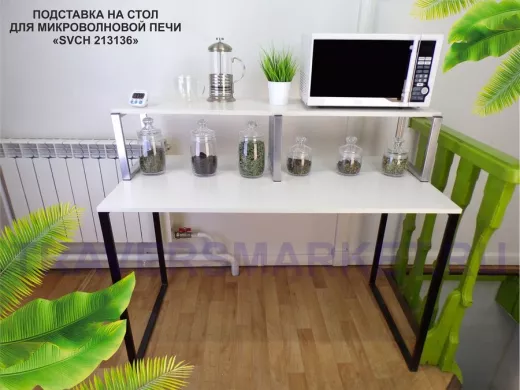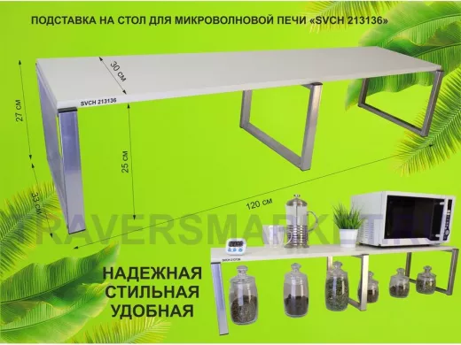 Подставка на стол для микроволновой печи, высота 27см, серебр "SVCH 213136" полка 120х30см, сосна
