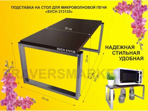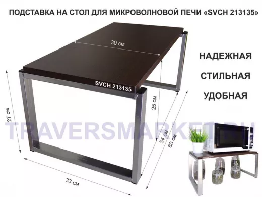 Подставка на стол для микроволновой печи, высота 27см, серебр "SVCH 213135" полка 60х30см, венге