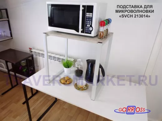 - Универсальная подставка для бытовой техники (микровоновой печи, кофемашины, тостера, электрического чайника и др) позволяет эффективно использовать место на столе.
