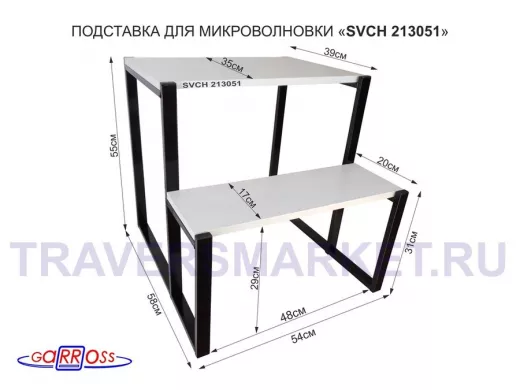 Заказать звонокПодставка для микроволновки, черный, 55см "SVCH 213051" с двумя уровнями 55 и 31 см,сосна выбеленная