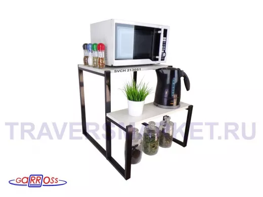 - Универсальная подставка для бытовой техники (микровоновой печи, кофемашины, тостера, электрического чайника и др) позволяет эффективно использовать место на столе.