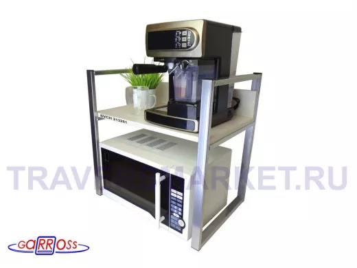Универсальная подставка для бытовой техники (микроволновой печи, кофемашины, тостера, электрического чайника и др) позволяет эффективно использовать место на столе.