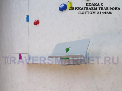 Полка с держателем телефона, серый "LOFTOM 214468" полка 54х10 см, сосна выбеленная