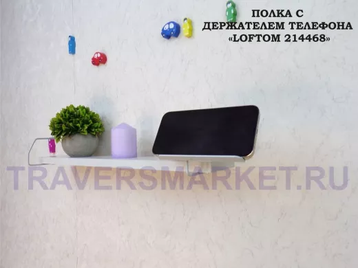 Заказать звонокПолка с держателем телефона, серый "LOFTOM 214468" полка 54х10 см, сосна выбеленная