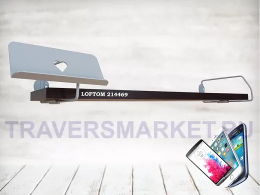 Полка с держателем телефона, серый "LOFTOM 214469" полка 54х10 см, венге