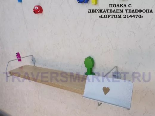 Заказать звонокПолка с держателем телефона, серый "LOFTOM 214470" полка 54х10 см, дуб сонома