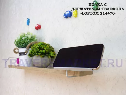 Полка с держателем телефона, серый "LOFTOM 214470" полка 54х10 см, дуб сонома