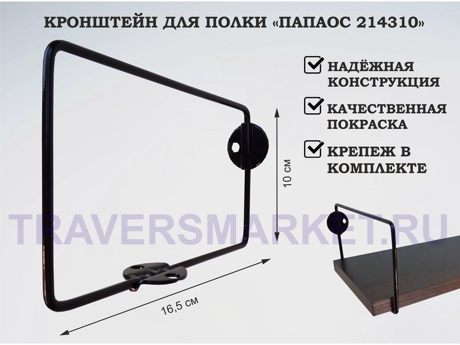 В корзину Купить в 1 клик Кронштейн к стене для полки, высота 10см, вылет 16,5см, черный "ПАПАОС 214310" прямоугольный