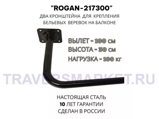 Заказать звонокСушилка для белья под веревки, 2 кронштейна, длина 100см, вылет 30см "ROGAN-217300" черный, 32мм