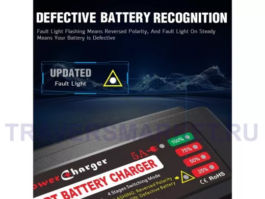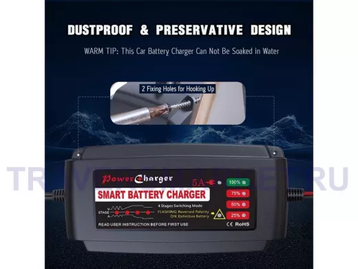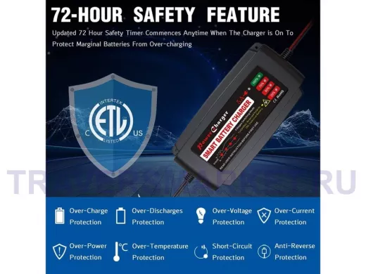 - Ёмкость заряжающей батареи от 15 до 120 А/ч