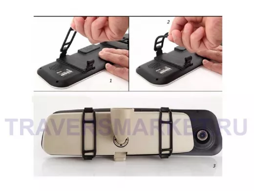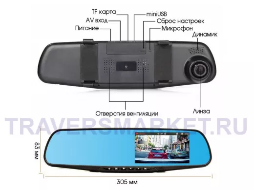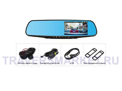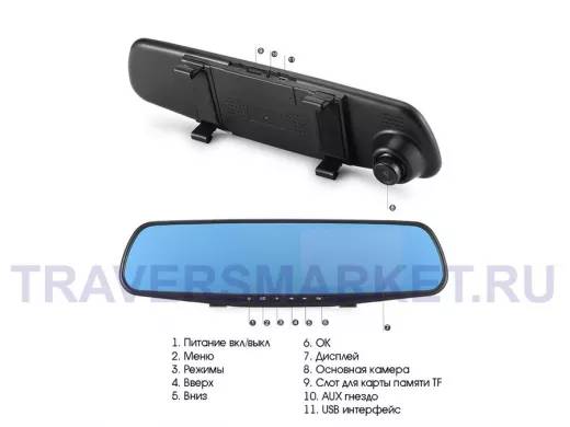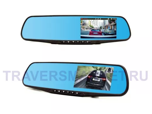 Автовидеорегистратор зеркало + камера "ABBIKUS-22962" с двумя видеокамерами и кнопками управления