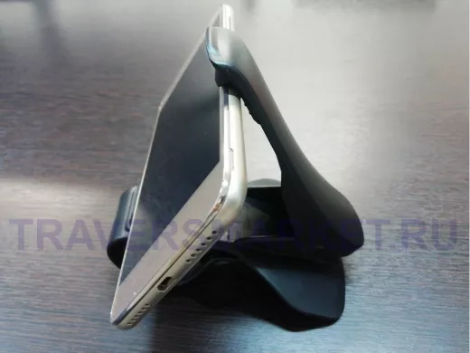 Прорезиненные части держателя защищают телефон и место установки, от царапин и повреждений. Телефон держится надёжно, не скользит и не выпадает. Держатель позволяет выставить оптимальный угол наклона, благодаря рельефным пазам на прорезиненных вкладках.