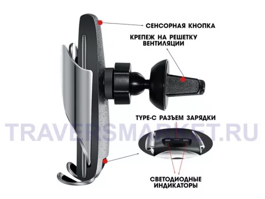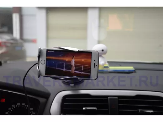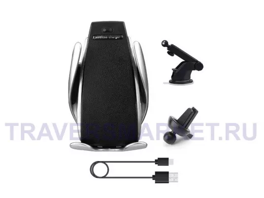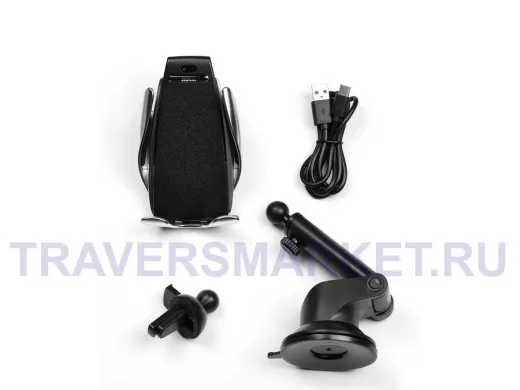 Автодержатель S5 (беспров. зарядка, 2 крепежа) (100шт в уп.)