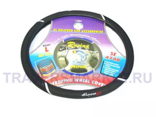 Оплетка на руль 38 см. M 4740A кожа черная+красный пластик