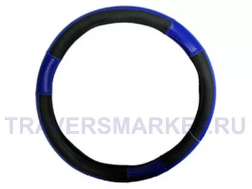 Оплетка на руль 40 см. L 4734C кожа черная+синий пластик