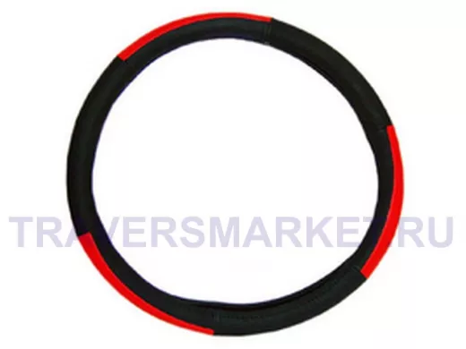 Заказать звонокОплетка на руль 40 см. L 4773D кожа черная+красная кожа вставка сверху "гладкая"