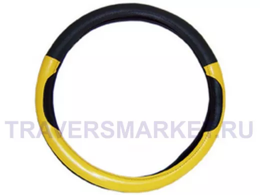 Оплетка на руль 40 см. L 7205 кожа черная+желтая кожа "спорт" "гладкая"