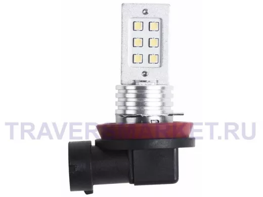 Универсальная лампа с цоколем H11 имеет мощность 12Вт. Корпус лампы представляет собой плоскую плату, на каждой стороне которой находится по 6 светодиодов расположенных в два ряда (всего 12 светодиодов). Подобное строение обеспечивает лампе одновременно увеличенный световой поток и визуальный комфорт при ее использовании.