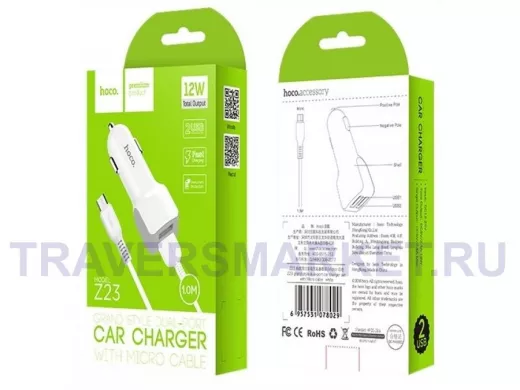ЗУ в прикуриватель HOCO Z23 MicroUSB (2400mA,5V)