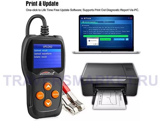 Стандарты тестирования в настоящее время включают в себя большинство мировых стандартов: CCA, BCI, CA, MCA, JIS, DIN, IEC, EN, SAE, GB. Хранение данных и загрузка на ПК для печати. Обновление в течение всего срока службы бесплатно с помощью одного щелчка мыши. Большой цветной ЖК-дисплей.
