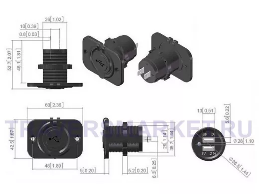- Выходной ток USB: 1A и 2.1A