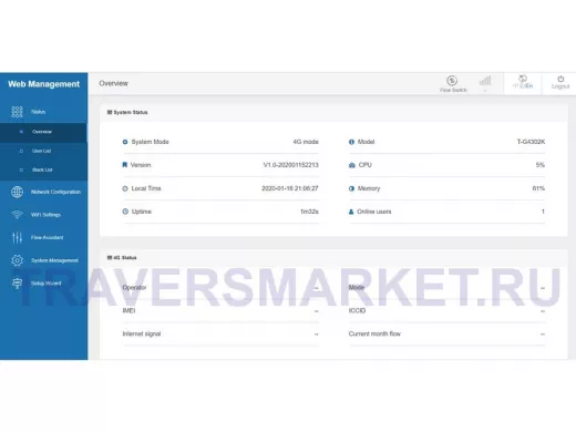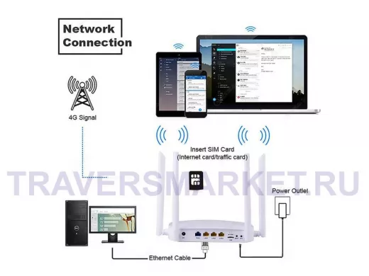 Предназначен для приёма/передачи мобильного интернета по сети 3G/4G и раздаче по Wi-Fi или LAN