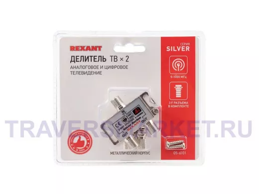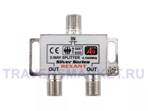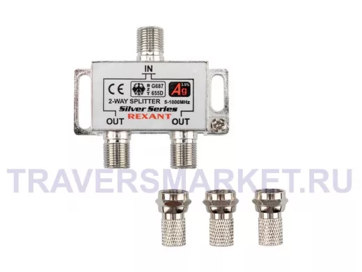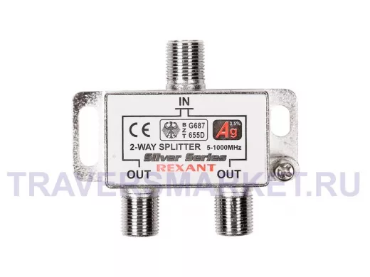 Заказать звонокДЕЛИТЕЛЬ ТВ х 2 + 3шт. F "BOX" 5-1000 МГц "Silver" REXANT