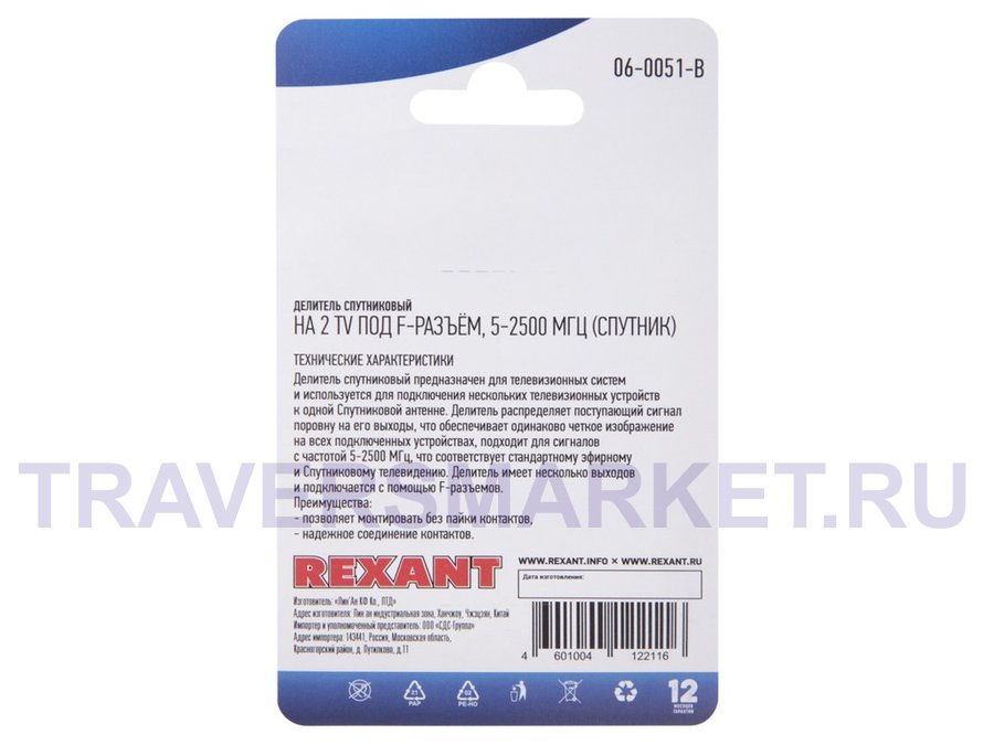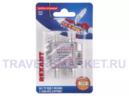 Заказать звонокДелитель спутниковый F-типа на 3 TV, 5-2500 МГц REXANT