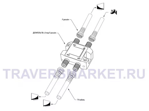 Делитель спутниковый предназначен для телевизионных систем и используется для подключения нескольких телевизионных аппаратов к одной Спутниковой антенне. Делитель распределяет поступающий сигнал поровну на его выходы, что обеспечивает одинаково четкое изображение на всех подключенных устройствах, подходит для сигналов с частотой 5-2500 МГц, что соответствует стандартному эфирному и Спутниковому телевидению. Делитель имеет несколько выходов и подключается с помощью F-разъемов.