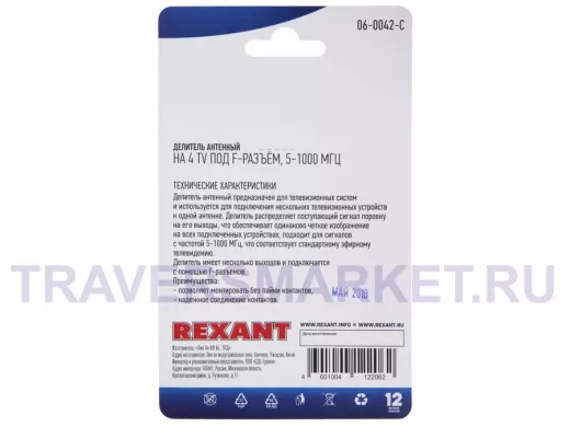 Делитель антенный F-типа на 4 TV, 5-1000 МГц REXANT