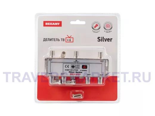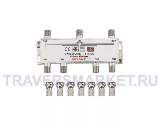 Заказать звонокДЕЛИТЕЛЬ ТВ "краб" x 6 + 7шт. F "BOX" 5-1000 МГц "Silver" REXANT