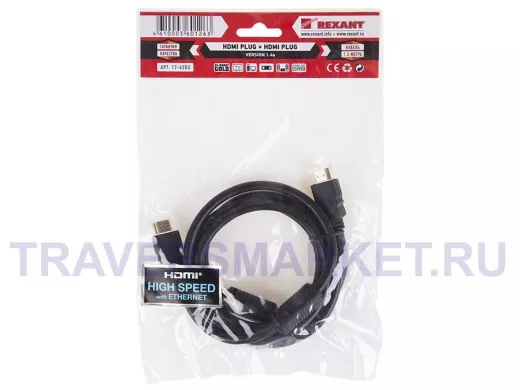 Заказать звонокШнур HDMI / HDMI 1,5м REXANT gold с фильтрами (шт)