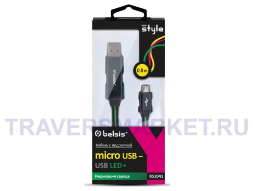 Кабель микро USB (AM/microBM) 0.8 м BS1041 с диодной индикацией