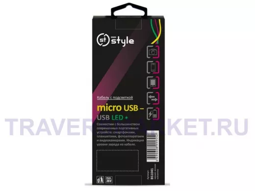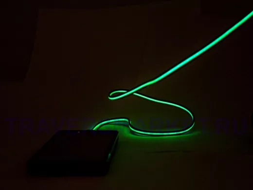 Кабель MicroUSB-USB. По длине имеет светодиодную подсветку зеленого цвета, которая отмечает процесс зарядки. Совместим со многими портативными устройствами: фотоаппаратами, планшетами, видеокамерами.