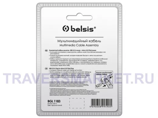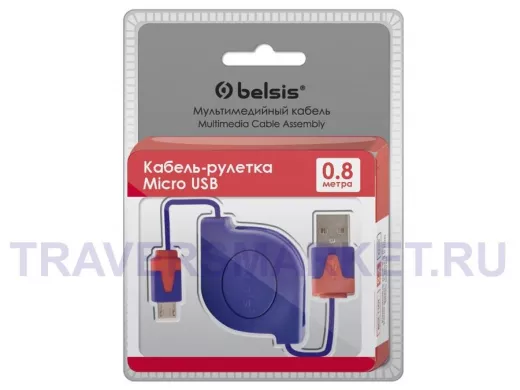 Заказать звонокКабель микро USB (AM/microBM) 5pin сине-красный, кабель-рулетка BGL1183