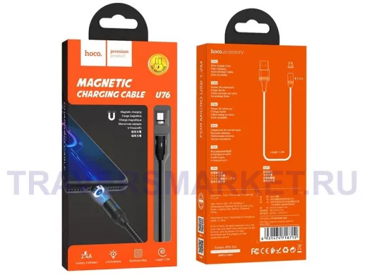 Заказать звонокКабель микро USB (AM/microBM) HOCO U76 магнитный 2A Черный (microUSB) 1.2м