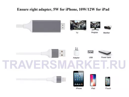?????????????: ??????? HDMI ??? iPhone ???????? ? iPhone 12/12 Pro / 11/11 Pro / XS / XS Max / XR / X / 8/8 Plus / 7/7 Plus / 6s / 6s Plus / 6/6 / 5s / SE 2020 / 5/5 c / iPad (iOS 8.0 ??? ?????)