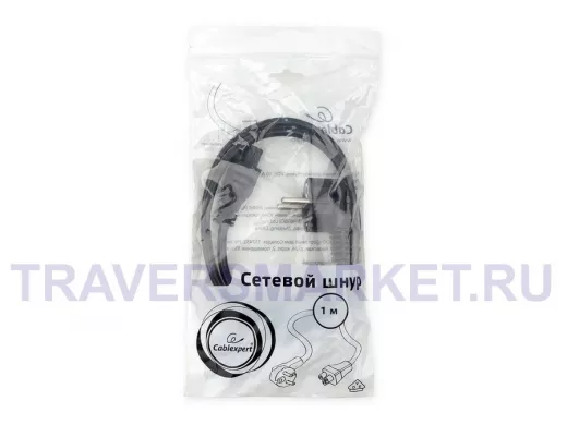 Кабель питания 1,0м для ноутбуков, аудио/видео техники Cablexpert PC-186-ML12-1M, Schuko- C5, 10А