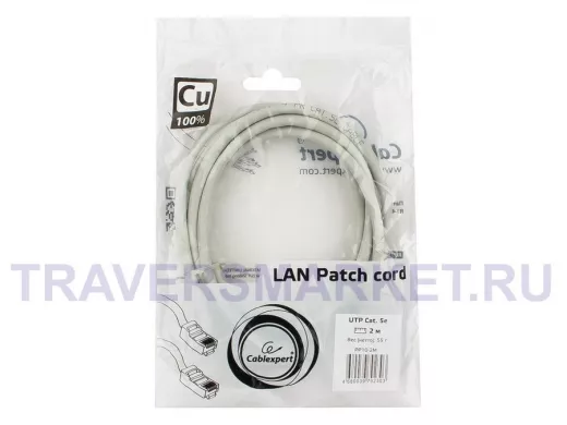 Патч-корд Cablexpert PP10-2M кат.5e, 2м, медный UTP литой, многожильный (серый) PP10-2M