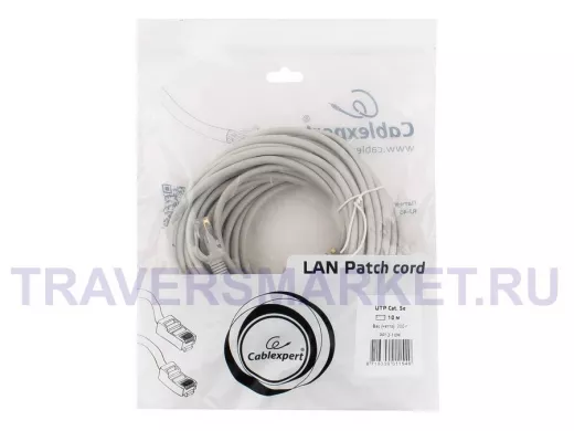 Патч-корд Cablexpert PP12-10M кат.5e, 10м, UTP литой, многожильный (серый) PP12-10M