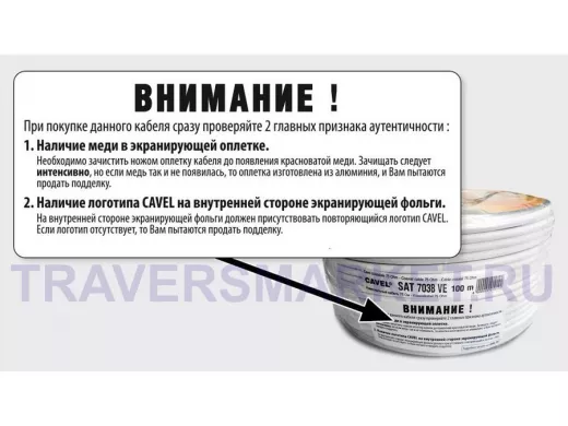 SAT703 B UE (100 метров в бухте) белый с зелён.полосой 75 Ом "CAVEL" ITALY европейское качество