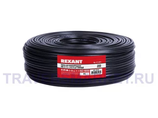 Кабель KBK-П-1,5 + 2x0,75мм², черный OUTDOOR REXANT предназначен для передачи телевизионных сигналов в системах видеонаблюдения с одновременным подключением питания и/или передачи сигналов управления.