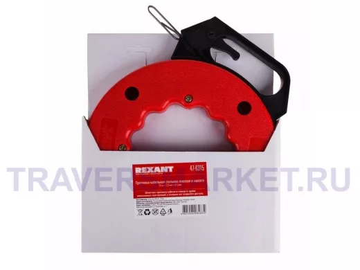 Протяжка кабельная стальная плоская в кассете 15 м REXANT