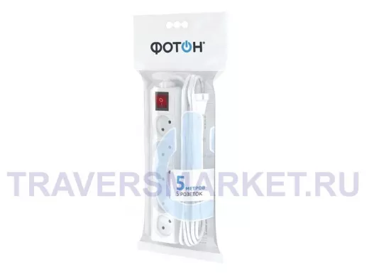 Удлинитель сетевой Фотон для дома 10-55S 5р 5м 10А б/з с выключателем (белый)