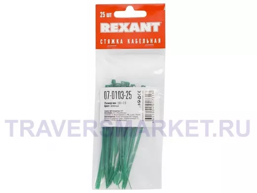 Заказать звонок100х2,5мм кабельный хомут (стяжка нейлонoвая) зелёная (25 шт) nylon REXANT