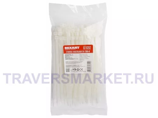 Хомут нейлоновый (кабельная стяжка) 200х7,6 мм белый REXANT предназначен для крепления или обвязки в жгут кабелей и проводов, крепления гибких гофротруб, а также других предметов к несущей поверхности или для соединения между собой. Такая стяжка используется при проведении электромонтажных работ, при монтаже структурированных кабельных систем, для бытовых нужд, а также в других отраслях народного хозяйства.