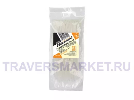 Стяжка нейлоновая 200 x 2,5 мм, белая (упак. 100 шт) PROconnect