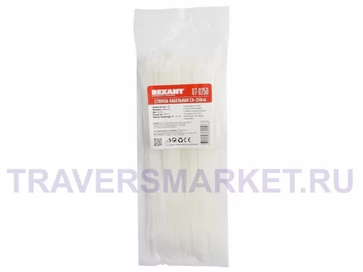 Заказать звонок250х4мм кабельный хомут (стяжка нейлонoвая) nylon белая (100 шт) белая REXANT