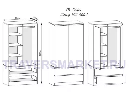 Заказать звонокШкаф МШ 900.1 904*1800*504 МС Мори ЛДСП Корпус/фасад белый