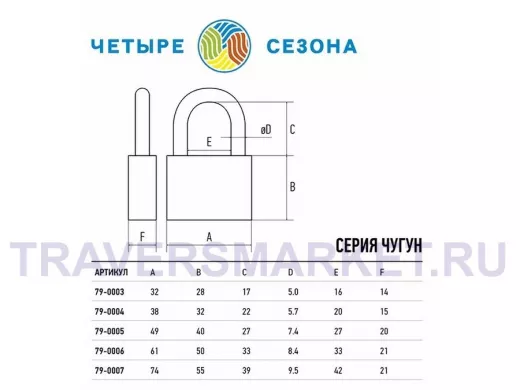 Навесной замок 50 мм чугун "Четыре Сезона" 79-0005"